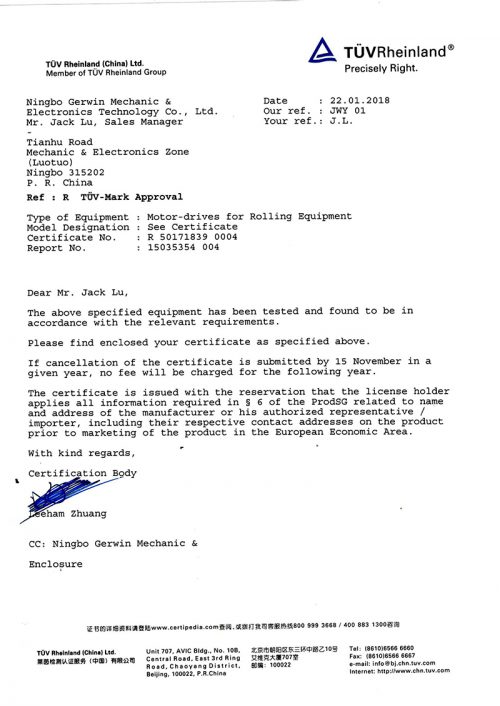 Ningbo GERWIN Mechanig & Electronics technology Co.,LTD.